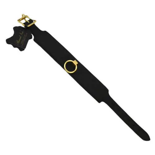 Descubre el equilibrio perfecto entre estilo, comodidad y control con este collar de cuero nobuk negro, un accesorio esencial para los amantes del bondage y los juegos de dominación. Su diseño elegante y su acabado en cuero nobuk de alta calidad aportan una sensación de lujo que realza cualquier sesión íntima.